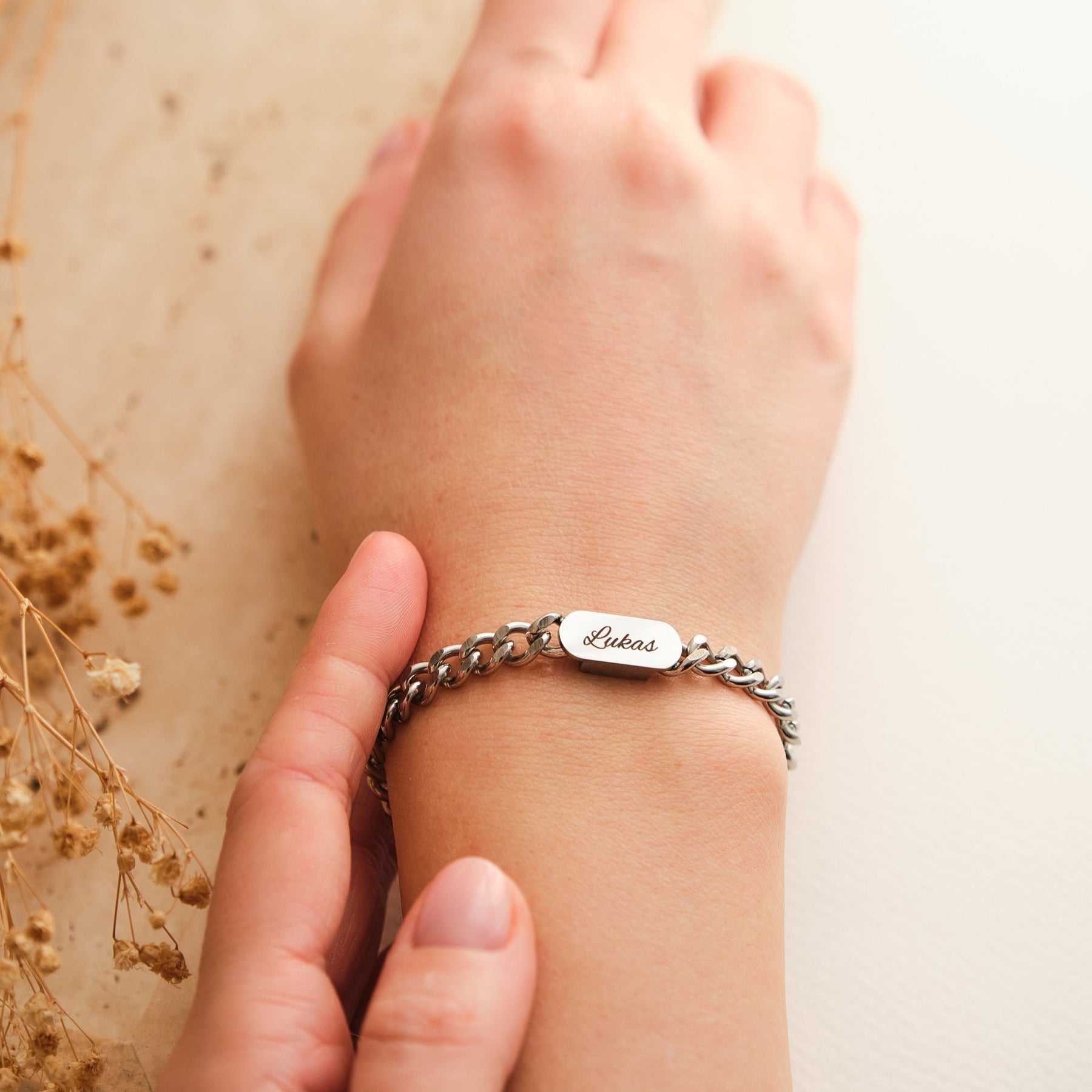 Wenn Schmuck nicht nur ein Accessoire, sondern ein Unikat sein soll ist dieses Armband die richtige Wahl. Mit unserem personalisierten Partnerarmband kommt dein persönlicher Style zum Vorschein. Das Armaband lässt sich individuell mit einem Namen, Wort oder Datum fertigen und wäre dein einzigartiger Modeschmuck. Für alle Individualisten aber auch als kreatives Geschenk das perfekte Schmuckstück, welches bei jedem Outfit - egal ob sportlich oder elegant – ideal zur Geltung kommt.